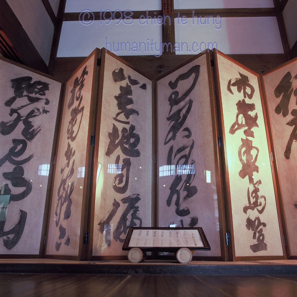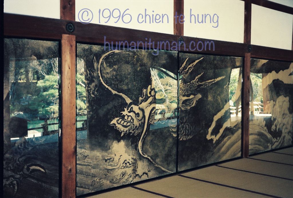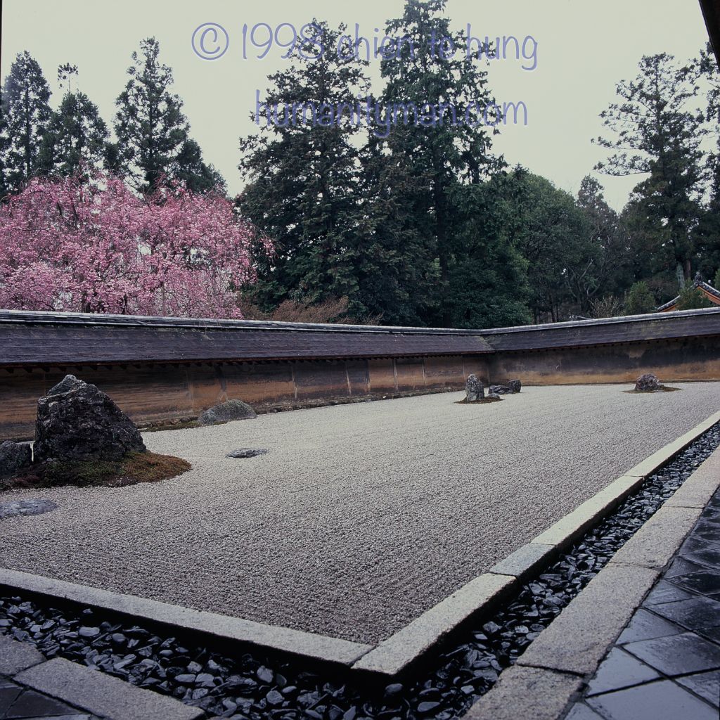 臨濟宗妙心寺派大雲山 龍安寺方丈內的漢詩。 | 臨濟宗妙心寺派大雲山 龍安寺方丈裡的 知足蹲距 | 臨濟宗妙心寺派大雲山 龍安寺油土塀, |