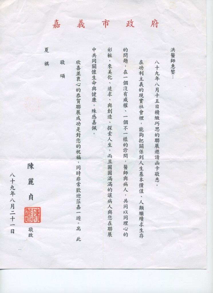 2006美術館長函 | 2007臺北醫學函 | 宋楚瑜函 |