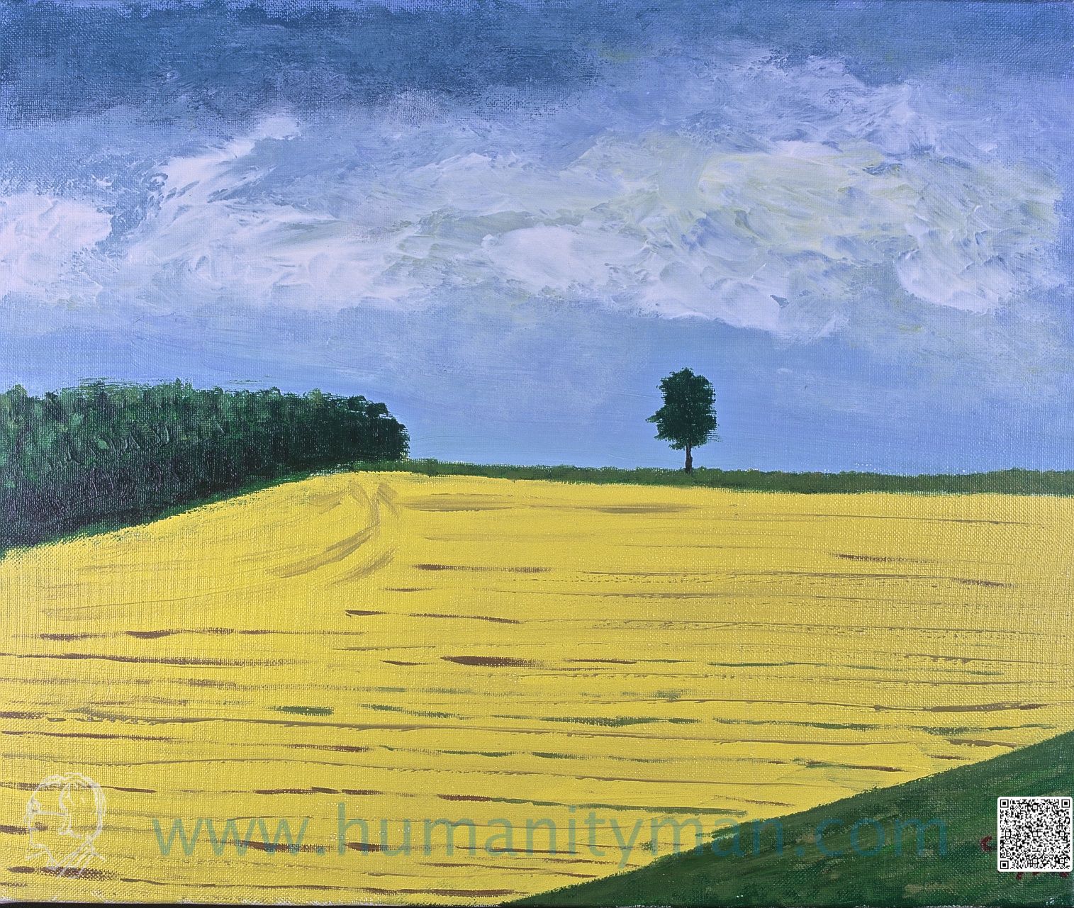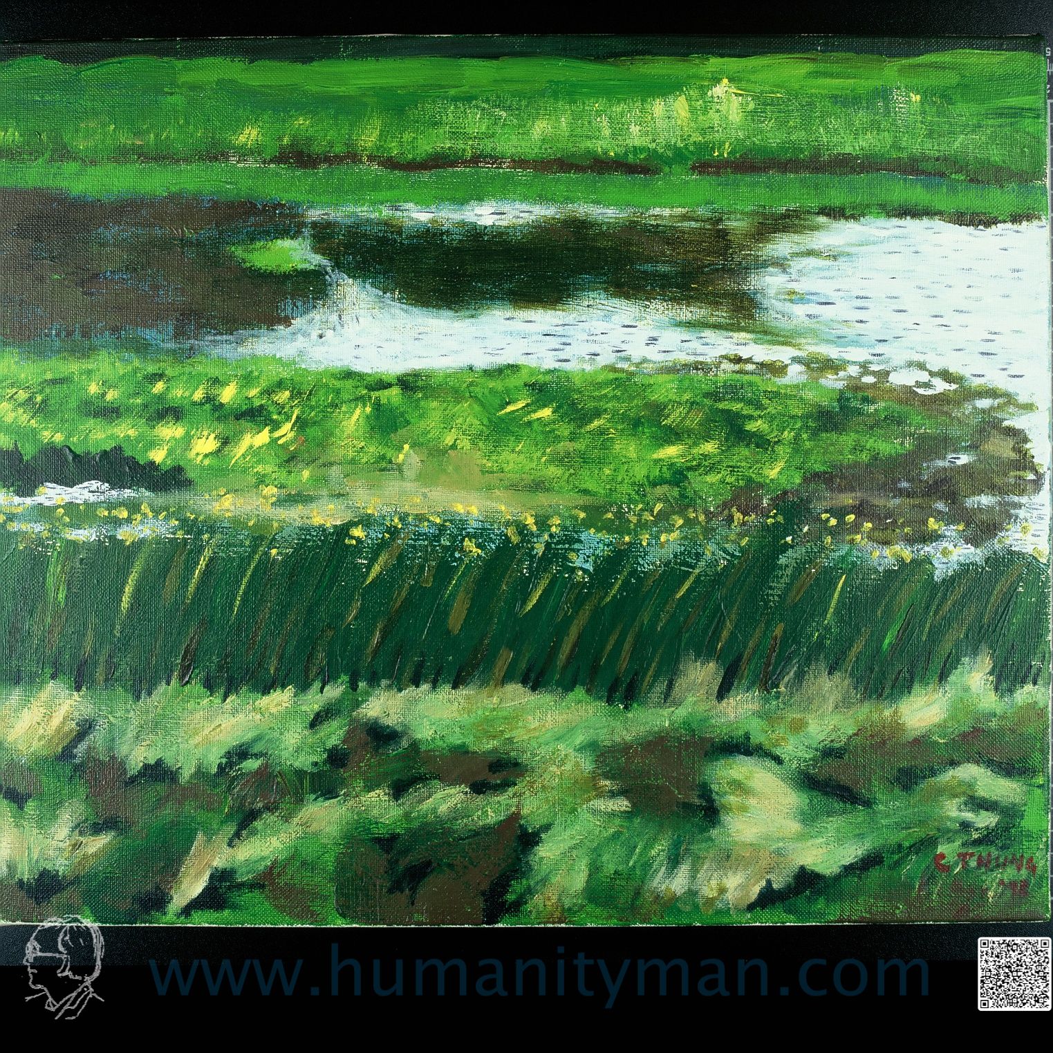 麥田的光影林布蘭壓克力彩 麻畫布 F6 1998年印象畫派捕捉光影,成了佳話,其實從古至今,原始人的洞穴也好,現代人的畫也好,光與影的形成就是繪畫的好材料,北海道美瑛町的麥田不特別,它也是地球中物理現象之一而已。 _