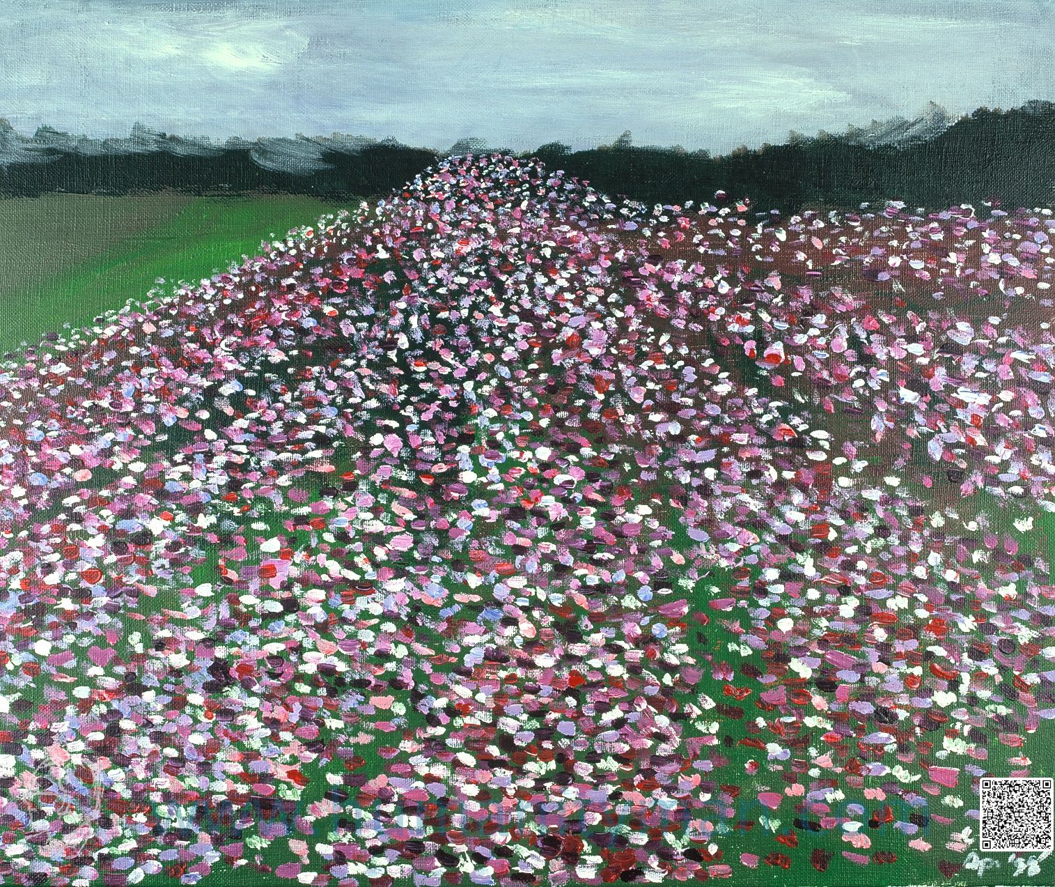 櫻花印象 林布蘭壓克力彩 麻畫布 F10 1998年 這是北之丸公園的櫻花與油菜花,從田安門走過,往下看的遠眺花海。_