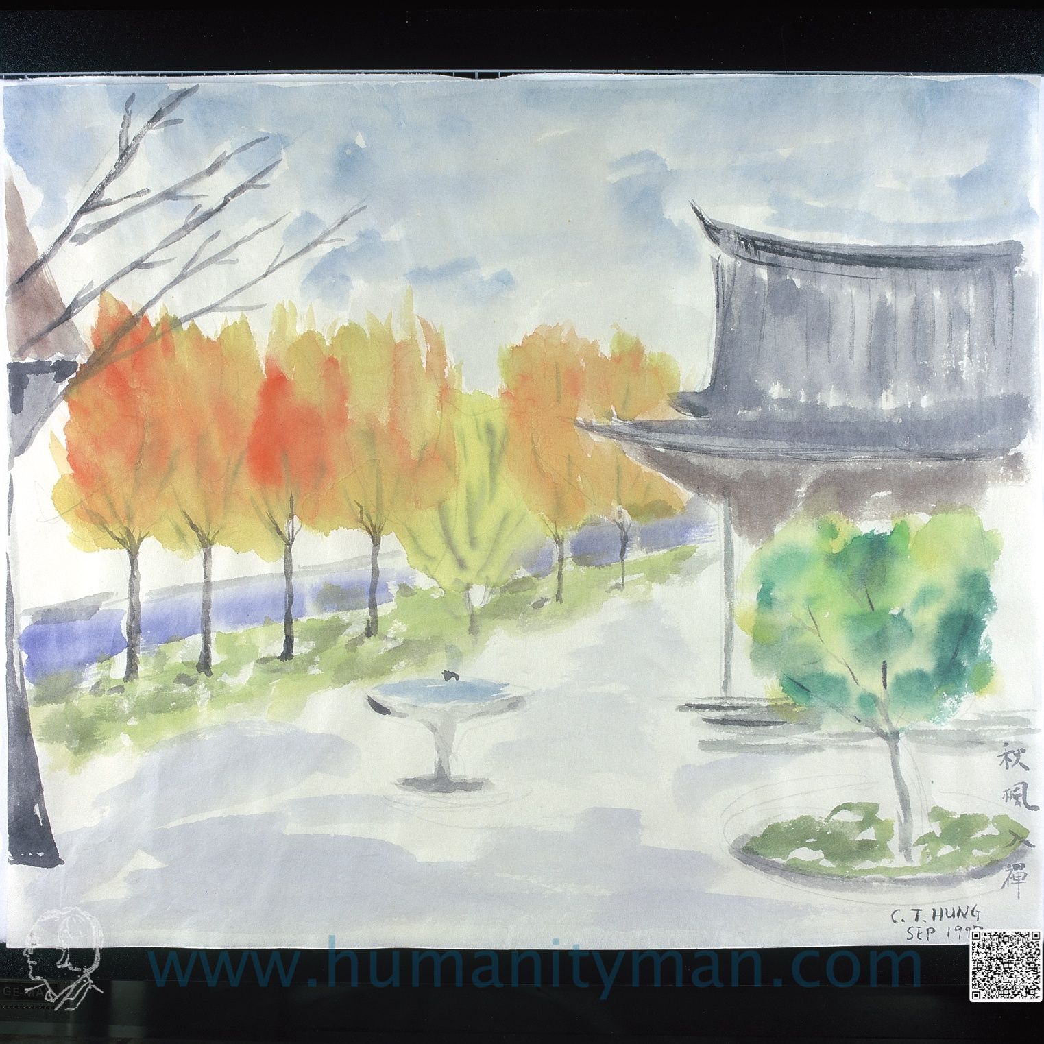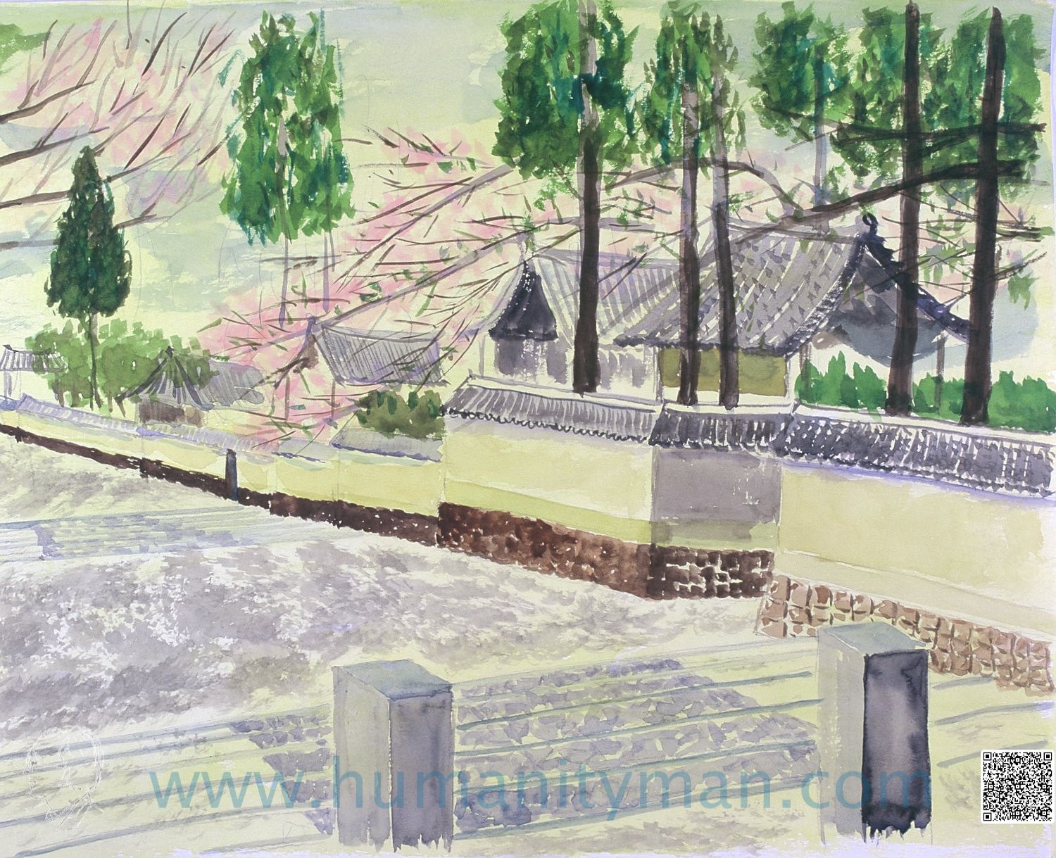南禪寺水彩 水彩紙 F6 1996年。史記留候世家:『願棄人間事』。