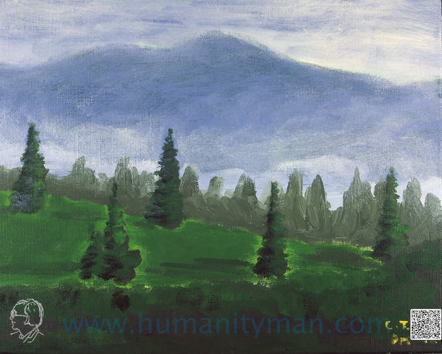 上高地下山時 林布蘭壓克力彩 麻畫布 F6 1998年上高地是日本北阿爾卑斯山的入口之一,山不在高,有人歌頌則靈。_