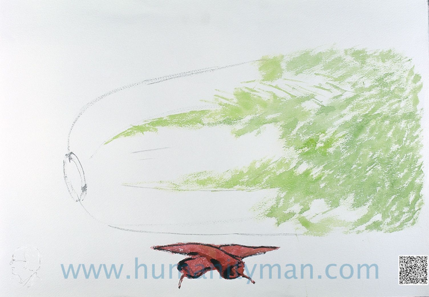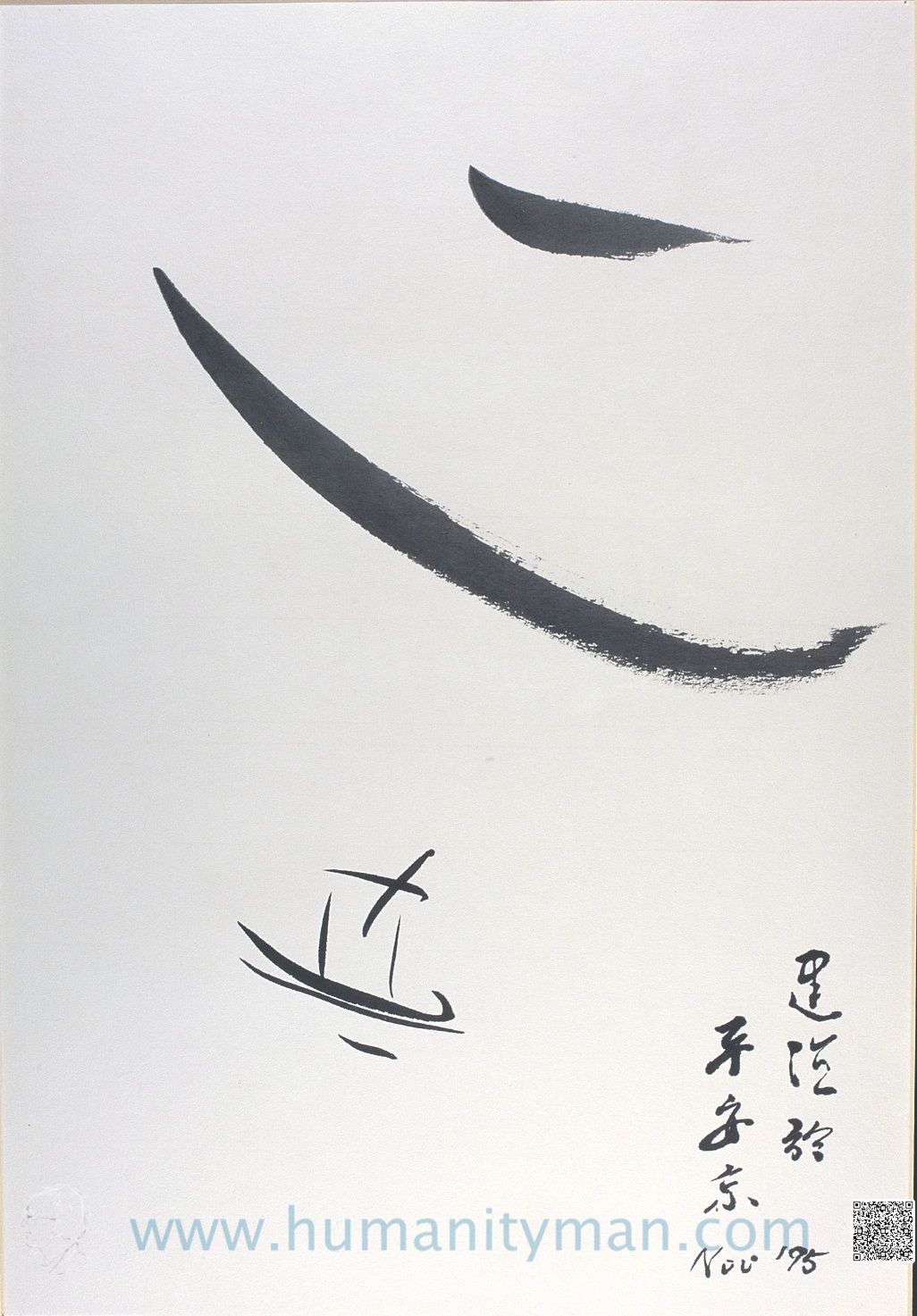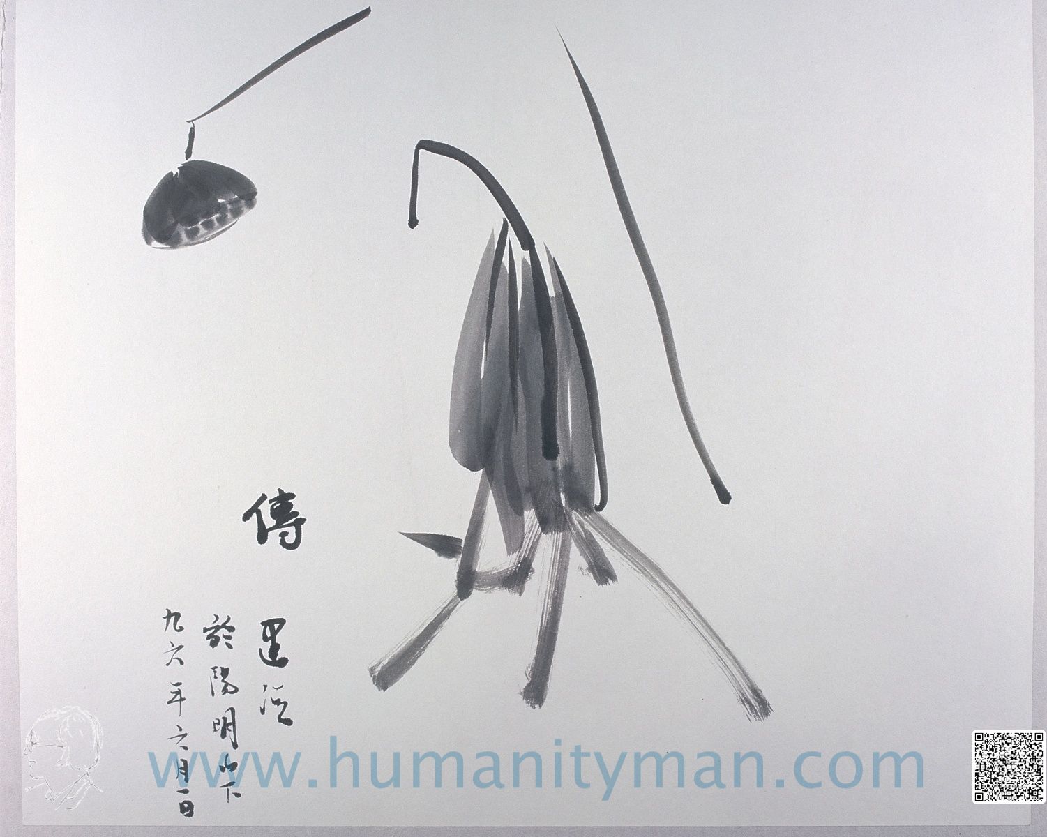 傳 水彩 日本褚紙 F8 1996年 這是日本徘畫習作,內心平靜,精神集中。不考慮透視、顏色、只表達意念,手要快,否則心一走,就畫不出來了。不可能像畫油畫那般一而再、再而三的重疊,反而是描寫當下的感動。_