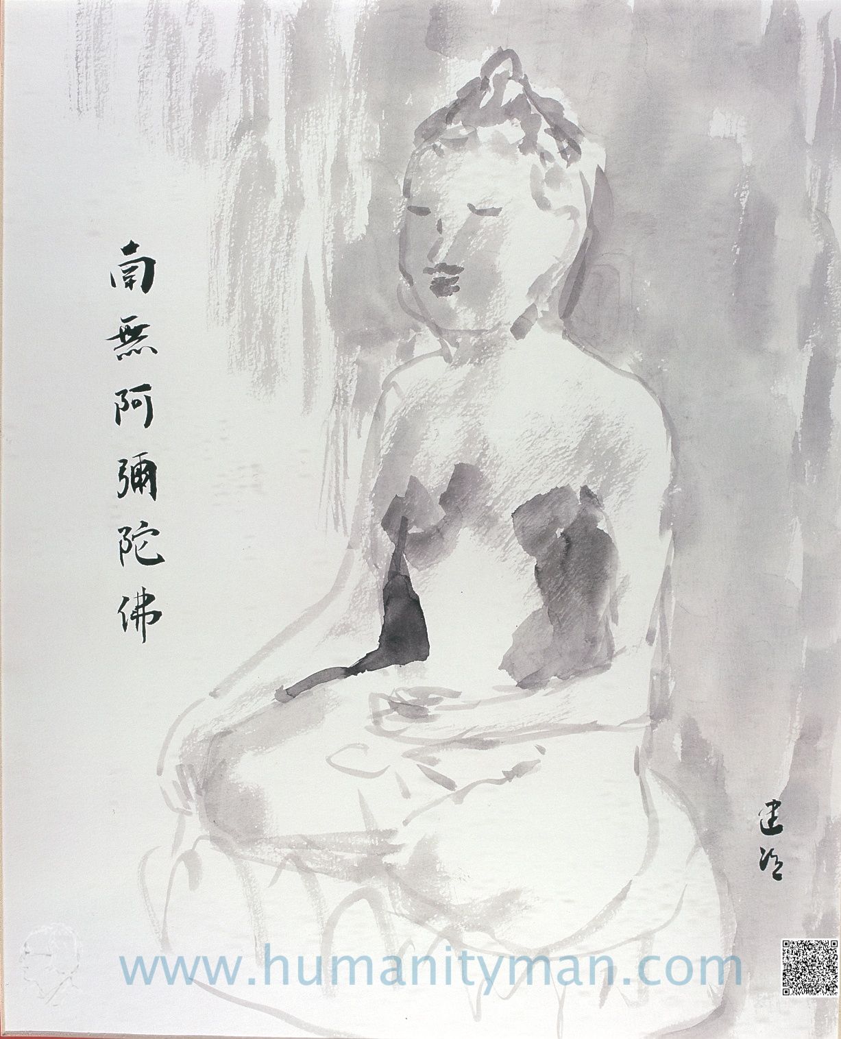 阿彌陀佛水墨 日本褚紙 F8 1996年