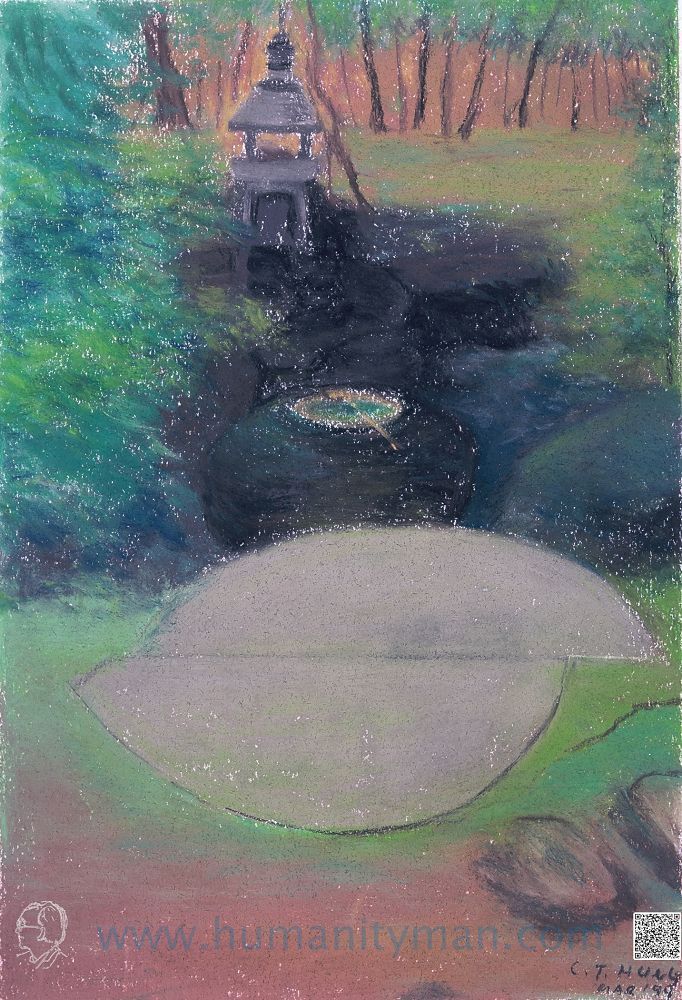 市松模樣在禪院粉蠟彩 八開 MBM紙