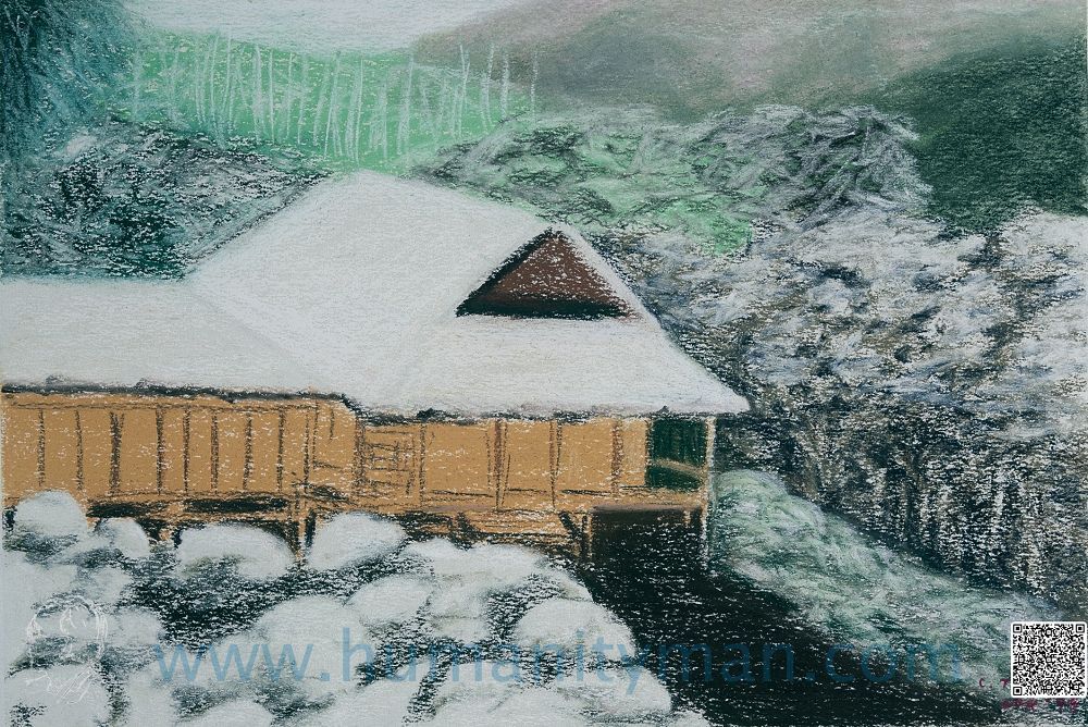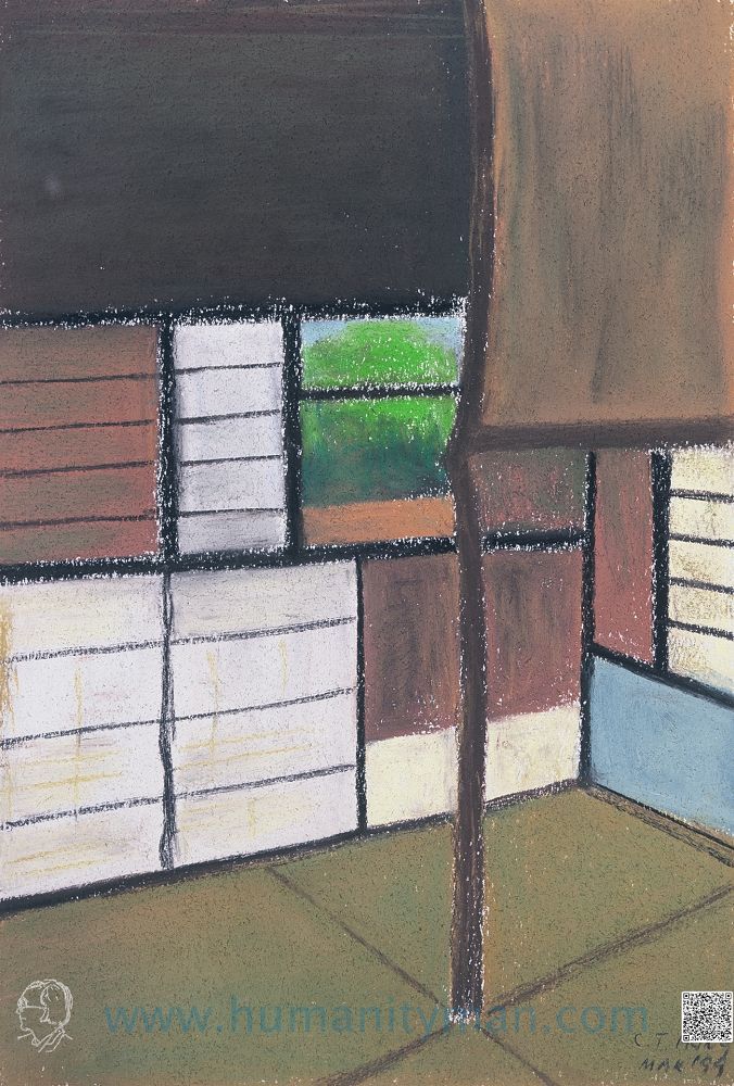 時光流入障子影 蠟粉彩 八開MBM 素描紙