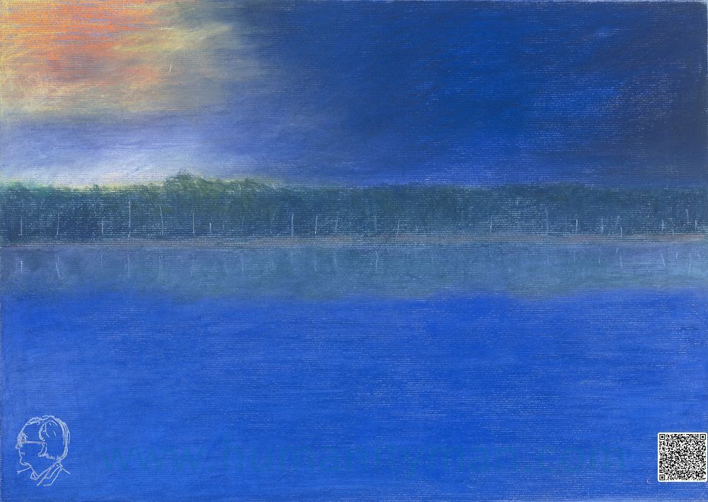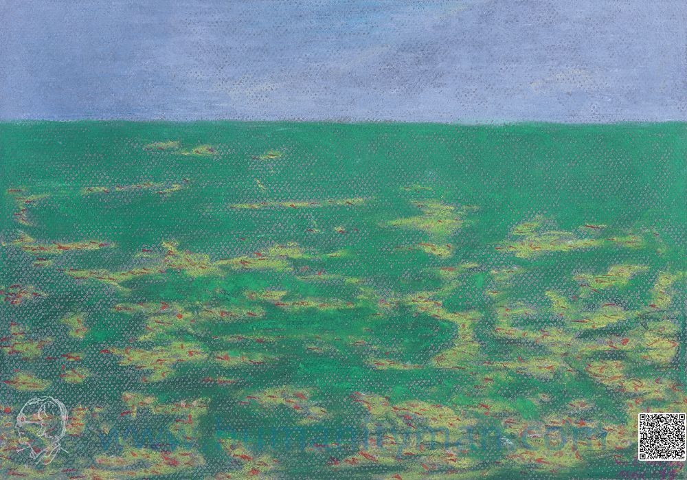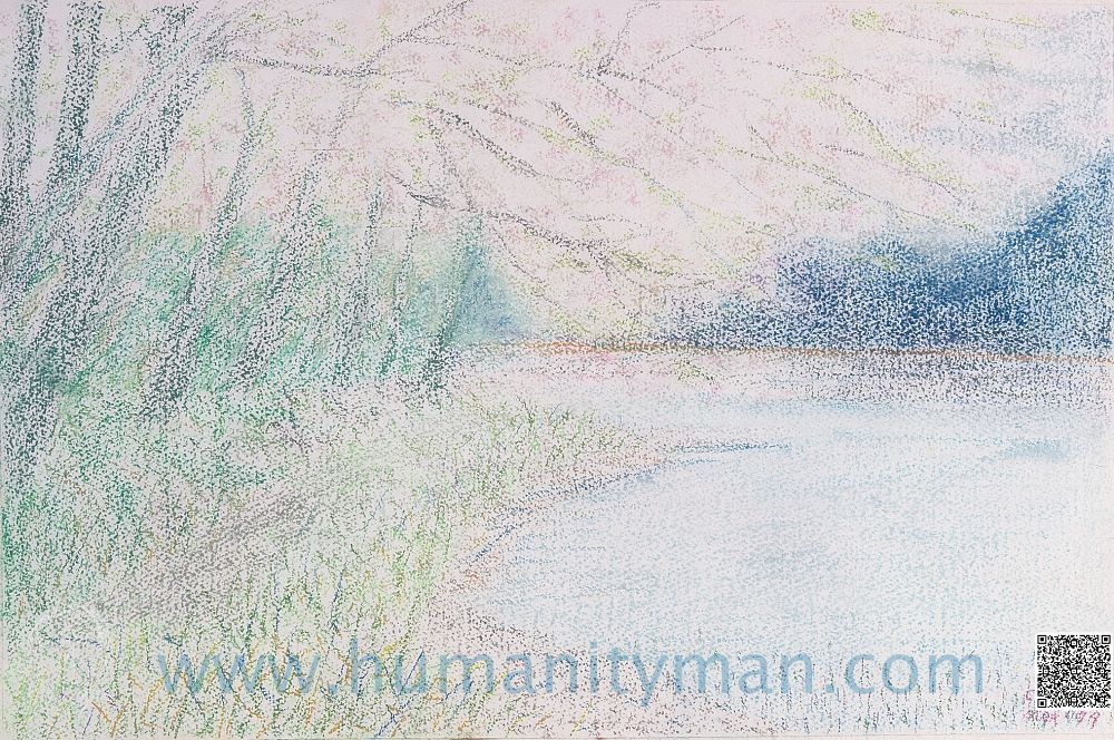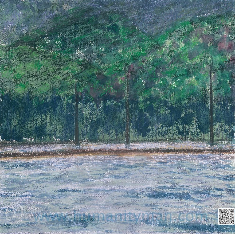 夢裡初春的池塘粉彩 八開 arches 300公克粗目水彩紙