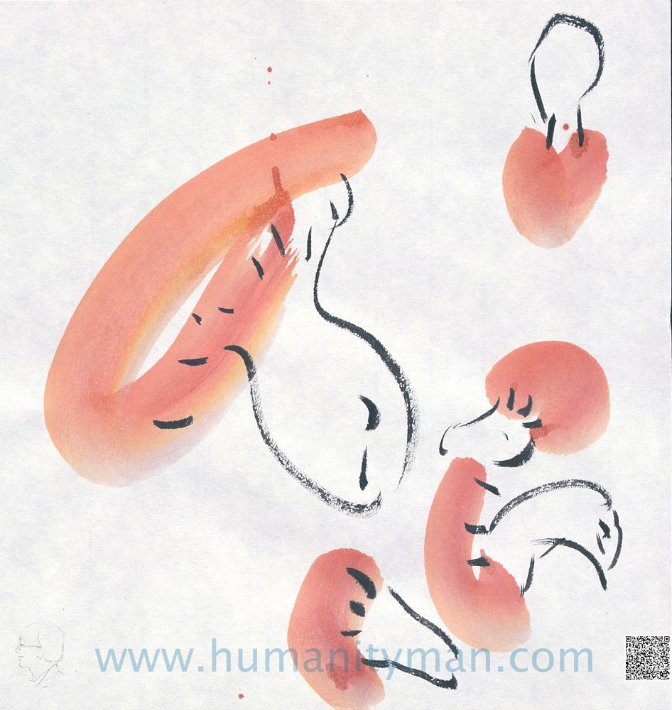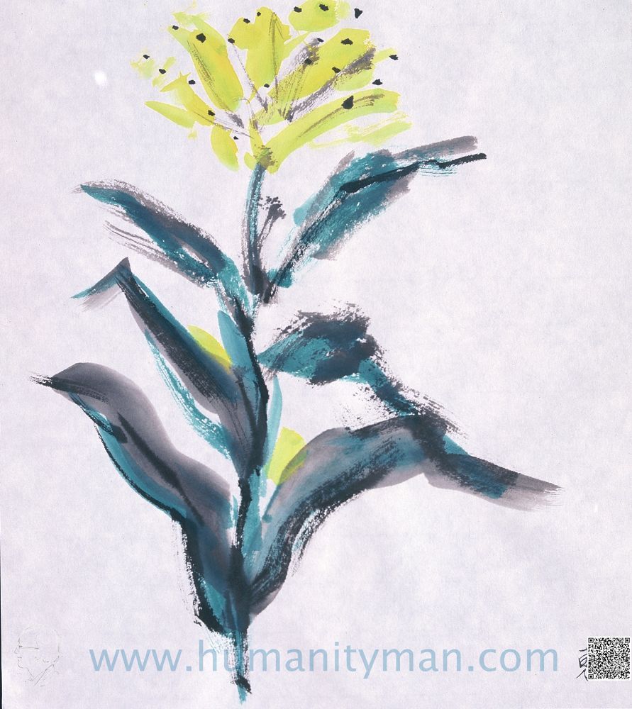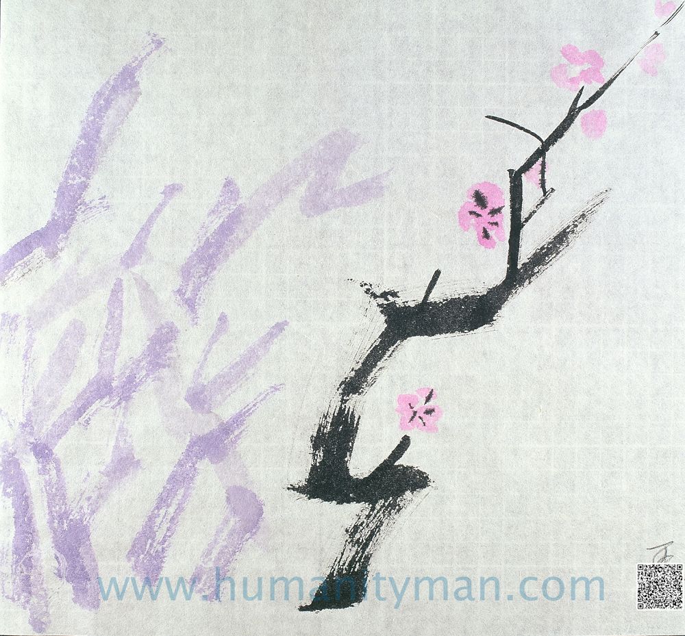 庭園紅梅枝頭水墨-日本畫顏料宣紙