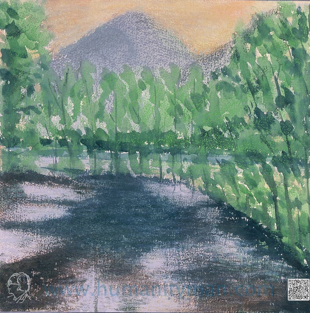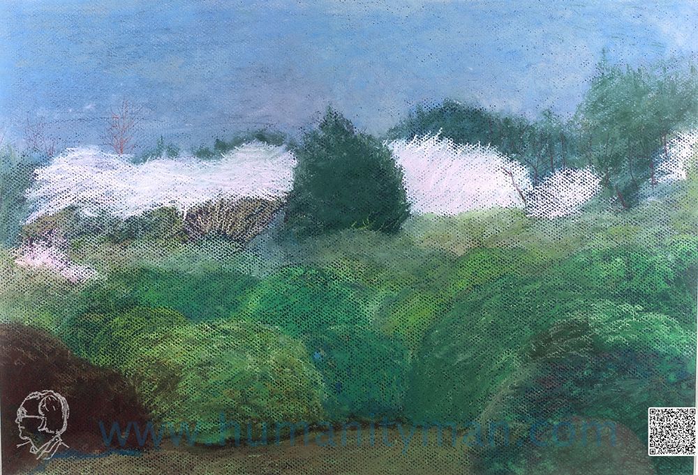 上高地初夏了水彩+ 粉彩 38× 38cm arches 300公克粗木水彩紙