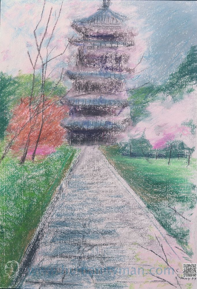 君臨五重塔 粉蠟彩 八開 MBM紙