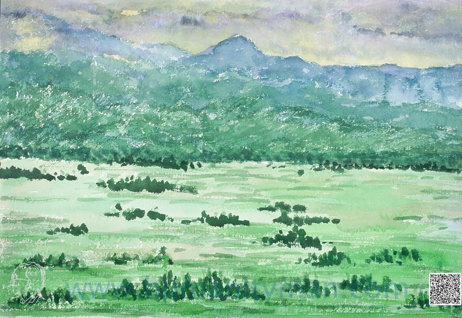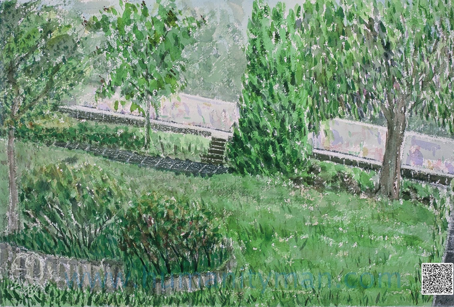 芝山公園梅雨後 對開Arches紙640公克粗目