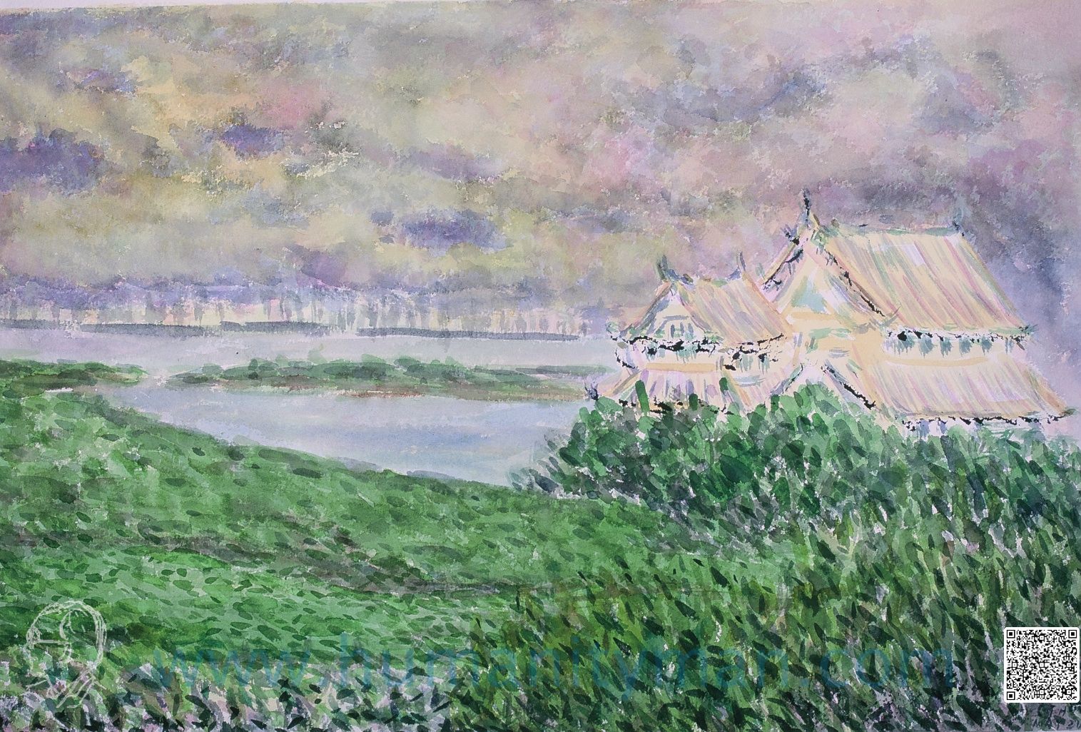 紫雲關渡宮四開 Arches 紙 850公克 粗目與學長相約去寫生,但是忘記帶畫筆,於是借來豬毛筆畫水彩