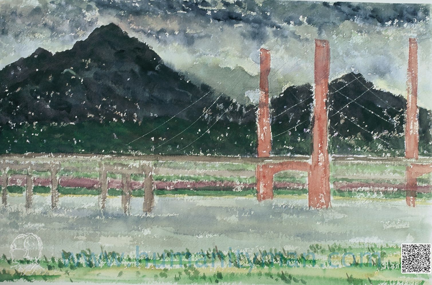 六月重陽橋 四開 Arches紙 850公克 粗目 梅雨中的感覺
