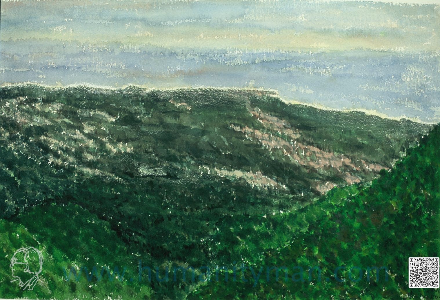 七八月之間四開 Arches紙 640公克 粗目登上陽明山主峰之一的大屯山頂