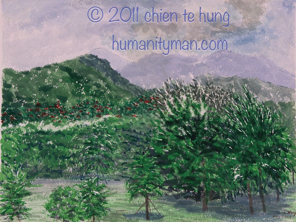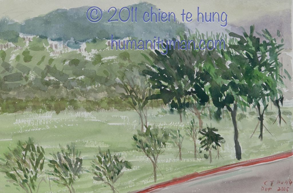我家看見大屯山 55×38cm,arches 850g 粗目水彩紙,溫沙牛頓史明克專家級透明水彩混用,2004年。